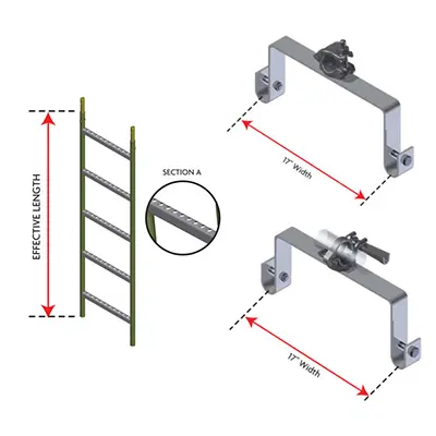 We make DSS 17″ wide ladder scaffold brackets under our strict QA/QC program and ISO standards. We carefully design and make each 17″ wide ladder and bracket to meet the highest quality standards.