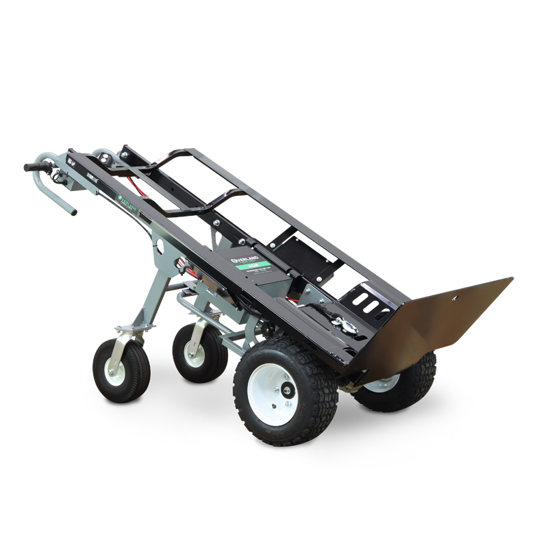 The Mega Herc Inflatable Hand Truck is the big brother to our Big Herc Hand Truck. At the heart of the Mega Herc is our brand new 1400W 36V direct drive electric motor along with a powerful 36V 22 Amp Hr AGM Battery Pack. The result is a cart that can haul up to 1200 pounds and last through an entire work day. We built this cart with direct input from inflatable companies who make their living moving bounce houses. Overall it packs a serious punch of power. The Mega Herc also features industry specific features such as built in e-strap pockets and d-rings. There are numerous advantages of electric power over gas powered such as; zero maintenance, quiet operation, ease of use, zero emissions, and indoor/outdoor capabilities. All Overland Carts are built to professional grade standards and are backed by a 1 year limited warranty. 16” All Terrain Pneumatic (Air) Tires are standard. Made in the USA. **All Mega Hercs come standard with AGM Sealed Lead Acid Batteries.** **Shown with optional winch (PN: 70418)** Mega Herc with 22AH AGM Battery Pack: 70384 Mega Herc with 22AH AGM Battery Pack + wireless winch: 70418 **Overland Carts ship fully assembled via Freight Carrier/Common Carrier** **Lift Gate service is required for MOST residential customers as it lowers the product to the ground** Top Reasons to Buy an Overland